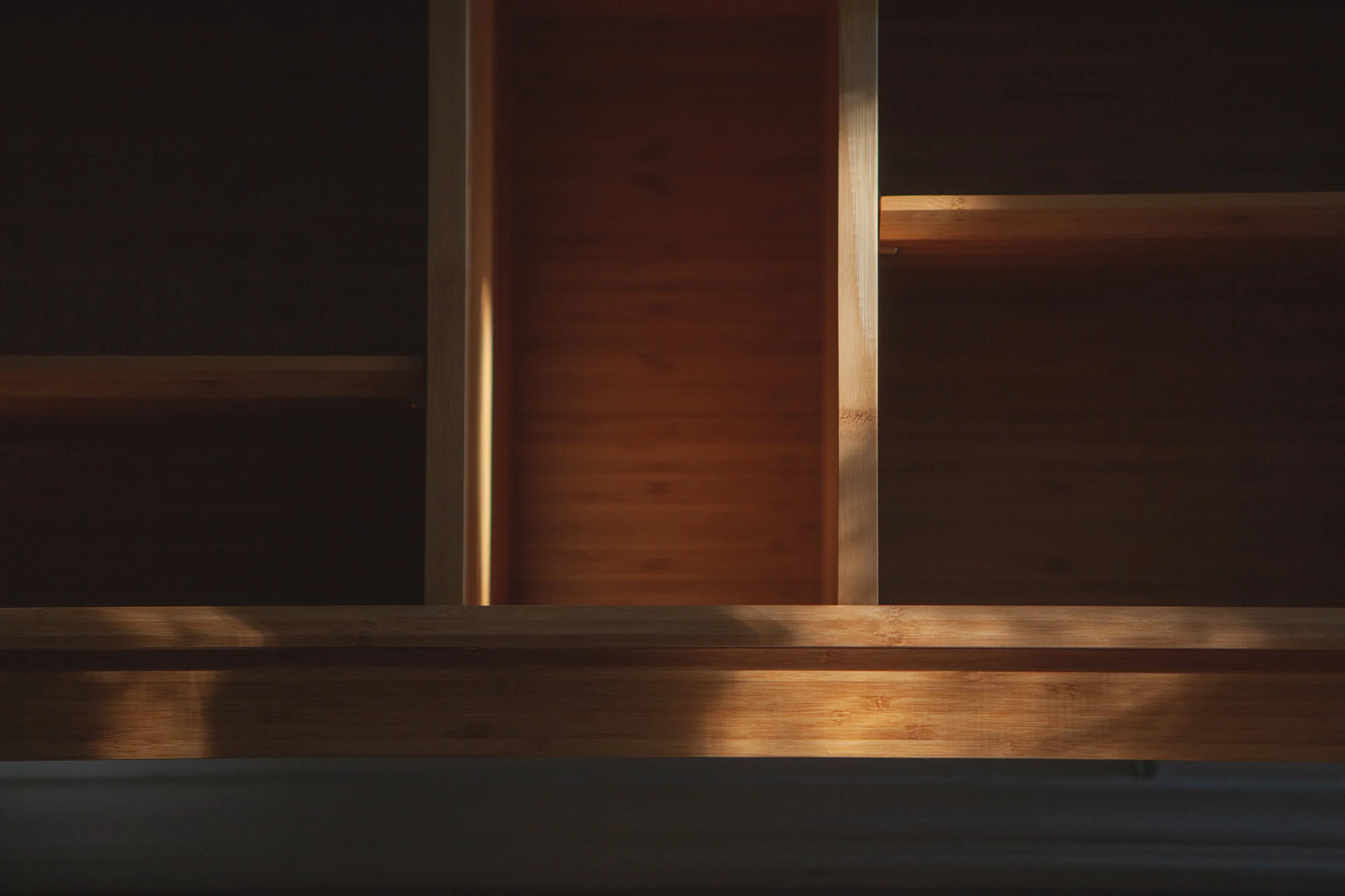 60in + 30in + 12in // BAMBOO + BRASSAs with our Stepped Bookcase, this case also provides multiple sized compartments for a variety of sized books (or anything else you can imagine). All of this is supported on our signature “floating” leg base.